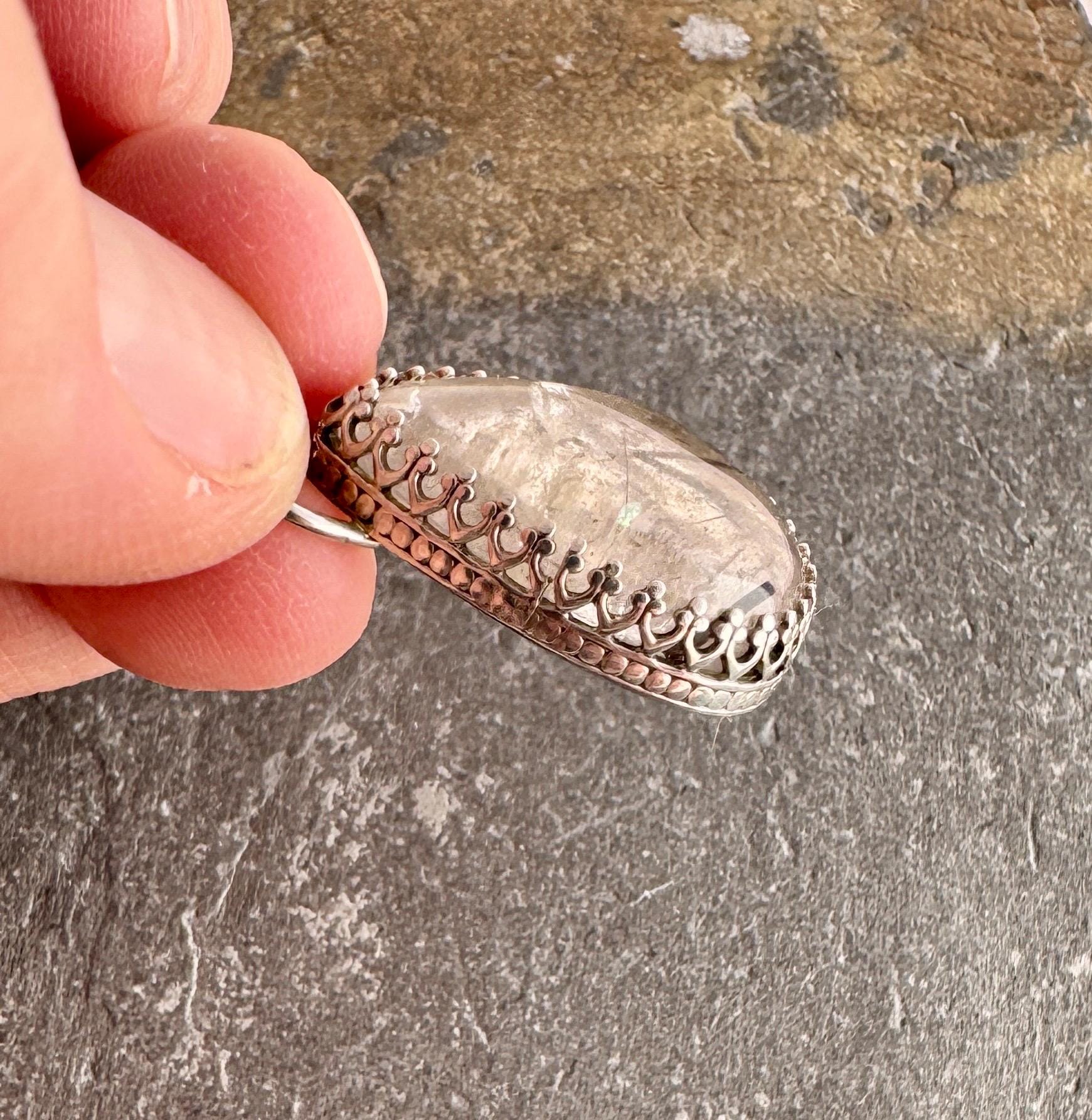The stone size is 18mm x 23mm (almost 3/4"x almost 1"), with the overall pendant 3/4" x 1 1/8".